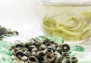 洞庭碧螺春 Bi Luo Chun – also known as Green Snail Spring, from Dong Ting. Its spiral shape is quite unique.